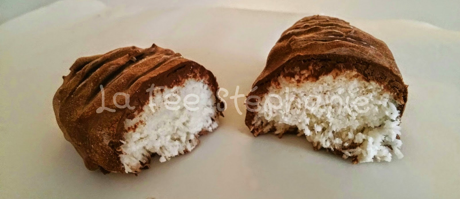 | "Voici mes "Bounty" maison grâce à ta superbe recette. Délicieux ! Merci pour toutes ces inspirations! Tihocan" |