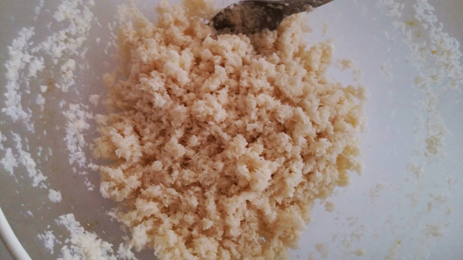 Dans un saladier, mélangez la noix de coco en poudre, le sucre glace et le lait de coco.