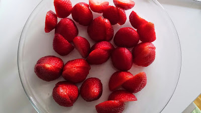 Première erreur, je n'avais pas préparé assez de crème. Mes fraises étaient donc recouvertes à moitié. Ce n'était pas très grave, j'ai prétendu que c'était pour un effet déco, et ça a bien passé.