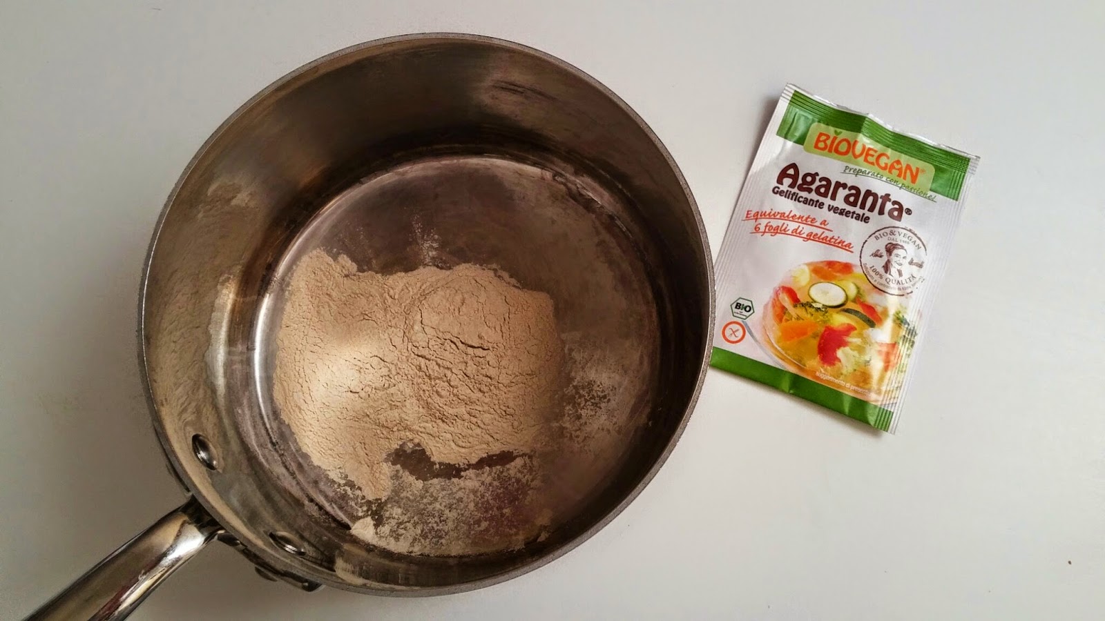 L'Agar agar c'est quoi? En bref il s'agit d'une poudre qui est contenue dans certaines espèces d'algues rouges. C'est un produit gélifiant végétal utilisé traditionnellement dans certaines pâtisseries japonaises. Il convient parfaitement pour remplacer la gelatine animale. Sans odeur et sans saveur, la gelée ne se forme qu'à condition d'être chauffée, c'est pourquoi on va bouillir la crème du cheesecake. On la trouve dans les magasins bio et se présente sous forme de petits sachets.