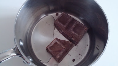 12. Laisser refroidir. Pendant ce temps, faire chauffer un peu de chocolat noir avec une goutte d'huile de tournesol dans une casserole et laisser tiédir.