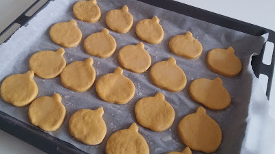 J'ai récupéré la pulpe de ma lanterne Jack-o'-lantern et préparé de délicieux biscuits à la courge. Il n'y a pas de manière plus agréable de manger des légumes que de les cacher dans les biscuits! Les enfants ont largement pu participer à la préparation des gâteaux, et surtout à leur décoration. Nous avons fait des citrouilles, mais il existe des emporte-pièces de toutes les formes dans le commerce, les enfants n'ont qu'à choisir!