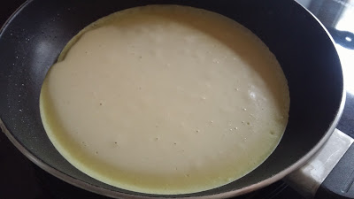 4. Chauffer et huiler une poêle. Quand la poêle sera bien chaude, verser une louche de pâte à crêpe et l'étaler finement.
