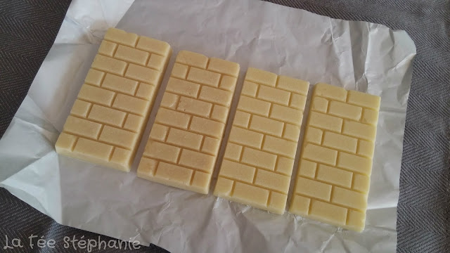 J'ai fait 2 petites tablettes de chocolat blanc nature, et 2 aux amandes.