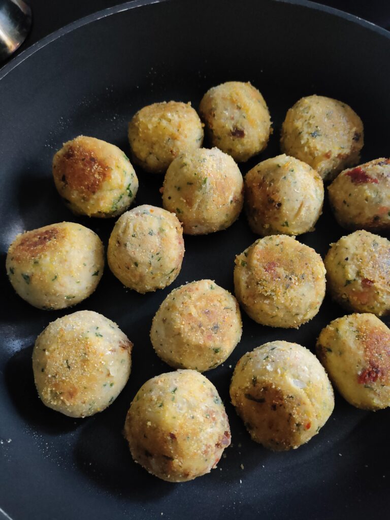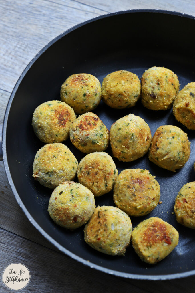 7. Chauffer une poêle huilée et faire dorer les boulettes quelques minutes de chaque côté.