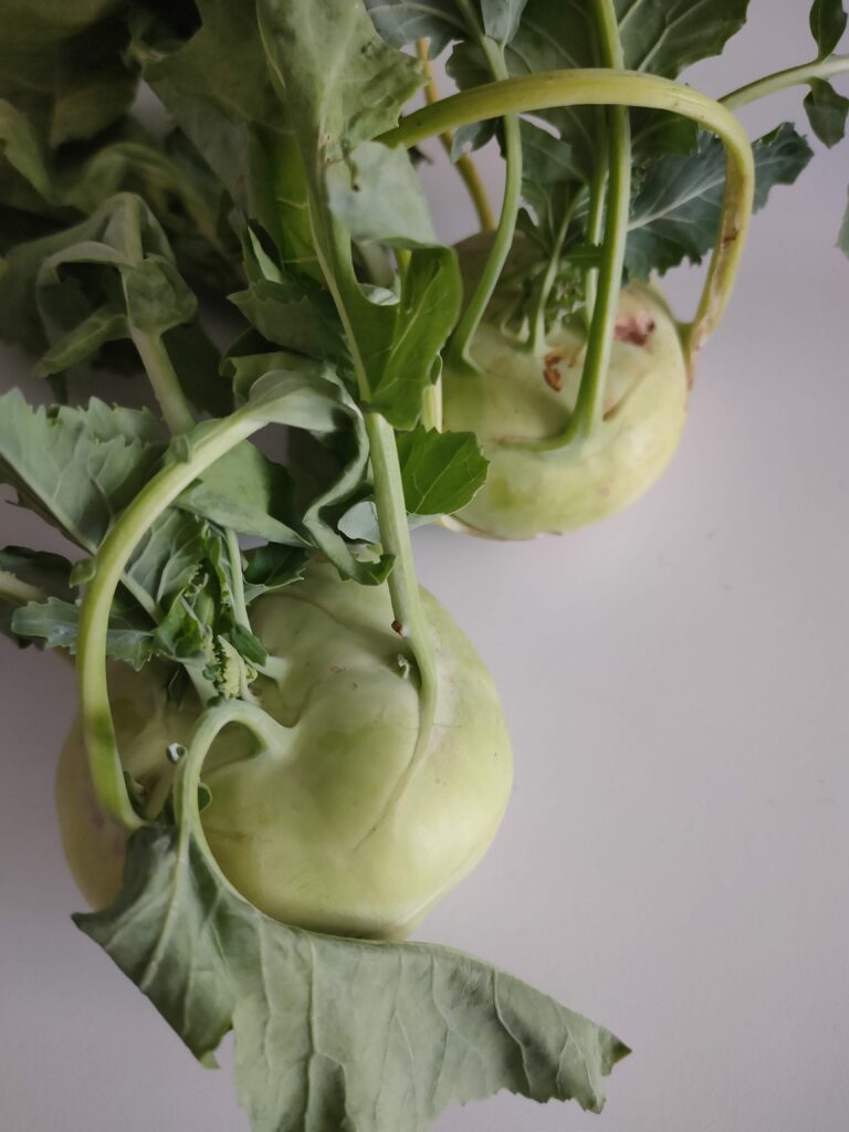 Au marché ce matin, j’ai acheté de quoi faire des salades et des crudités, une jolie botte de radis roses et du chou rave. Vous l’avez sûrement déjà vu sur les étals de votre maraîcher, mais que faire de ce drôle de légume qui ressemble un peu à un extra-terrestre avec ses antennes et comment le manger? Je le mange cru coupé en quartiers avec un peu de sel et je l’adore en carpaccio!! Coupez-le finement à l’aide d’une mandoline, arrosez-le de citron et d’huile d’olive, vous allez vous régaler c’est promis!! J’espère que vous serez tenté d’en acheter la prochaine fois que vous irez faire les courses.