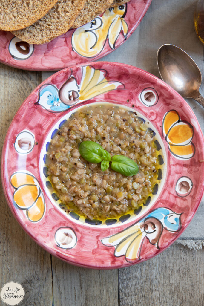 Minestra d’orzo, piselli e lenticchie – Soupe d’orge aux petits pois et aux lentilles