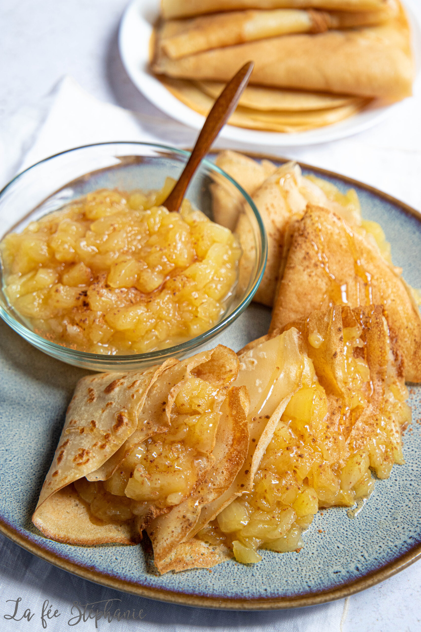 Je me rends compte que le chocolat ou la crème de noisettes sont délicieux, irrésistibles et succulents sur les crêpes, mais soyons un peu original quand même ! Il y a déjà des recettes de pâte à crêpes sur le blog, forcément, une par an, j’avais donc envie de vous proposer pour la Chandeleur 2022 quelque chose d’un peu différent. C’est en pensant au strudel que je me suis dit que je pourrais mettre des pommes cuites dans mes crêpes et j’ai bien fait, c’est un vrai régal. Vous m’en direz des nouvelles !