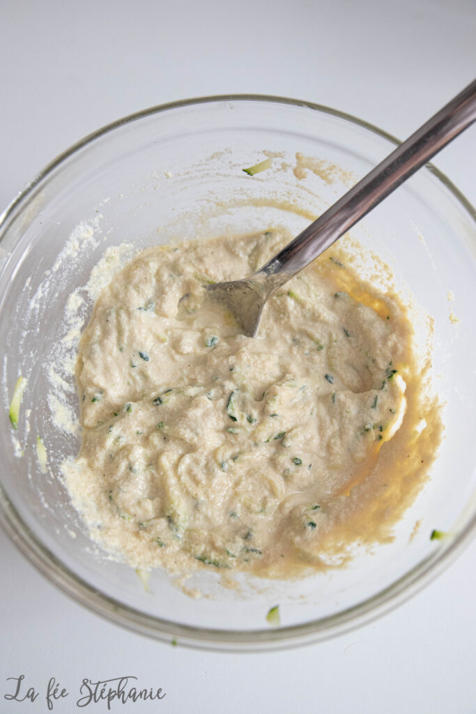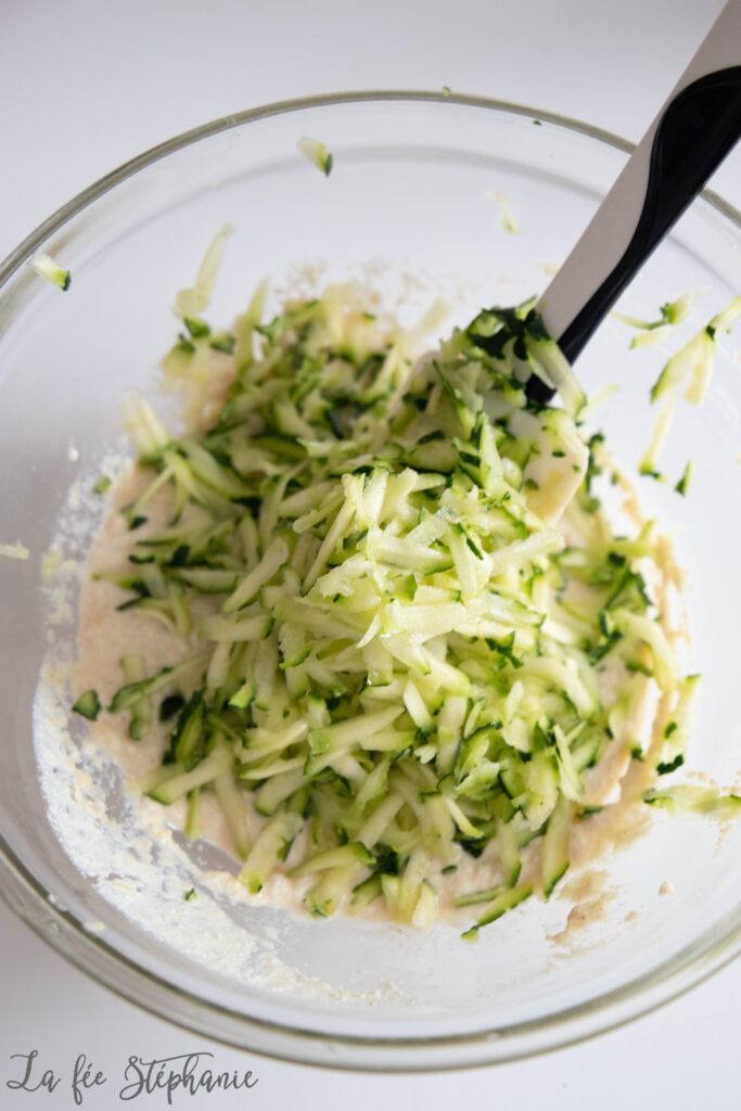 3. Ajouter la courgette râpée. Saler et poivrer.