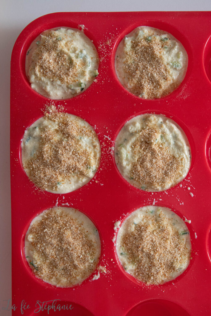 4. Répartir dans des petits moules à muffins. Saupoudrer de chapelure et enfourner 30 minutes à 180°C.