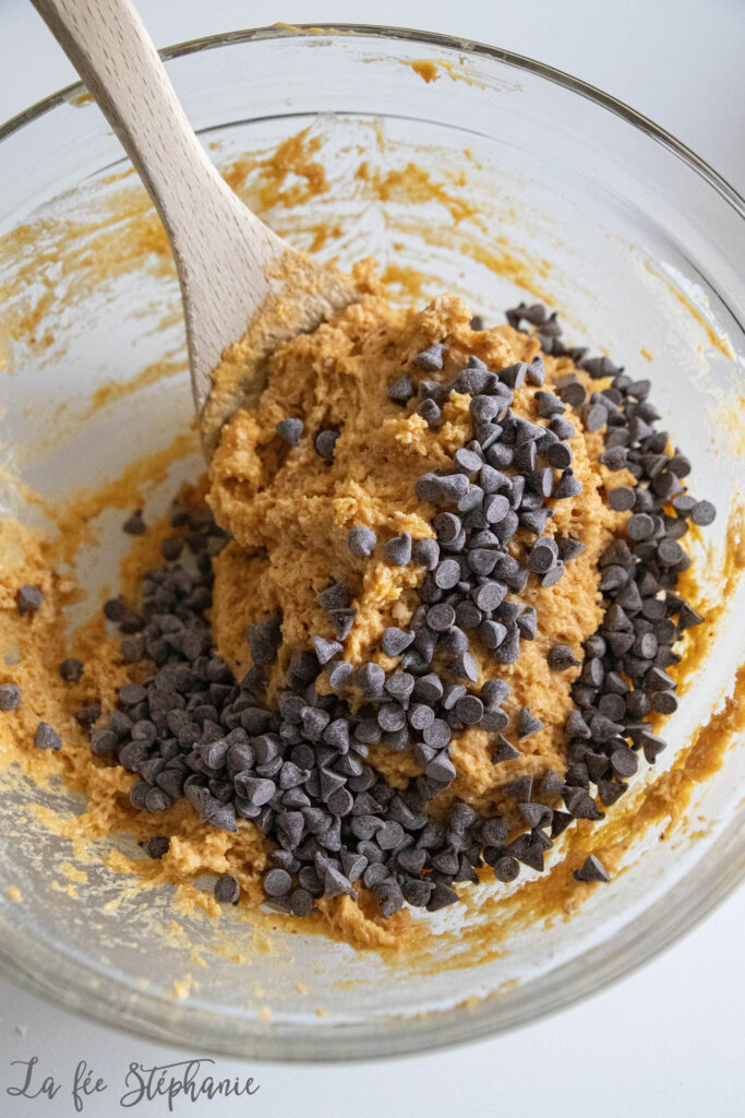 3.Mélanger avec les pépites de chocolat.