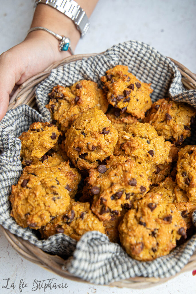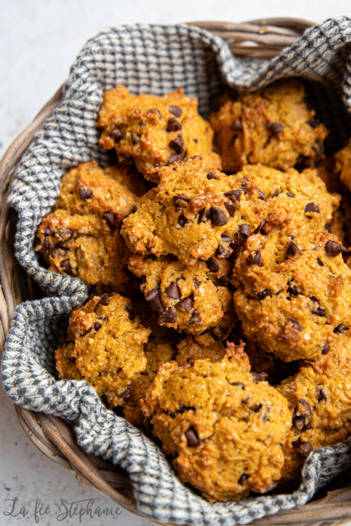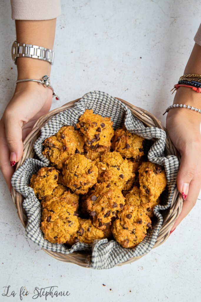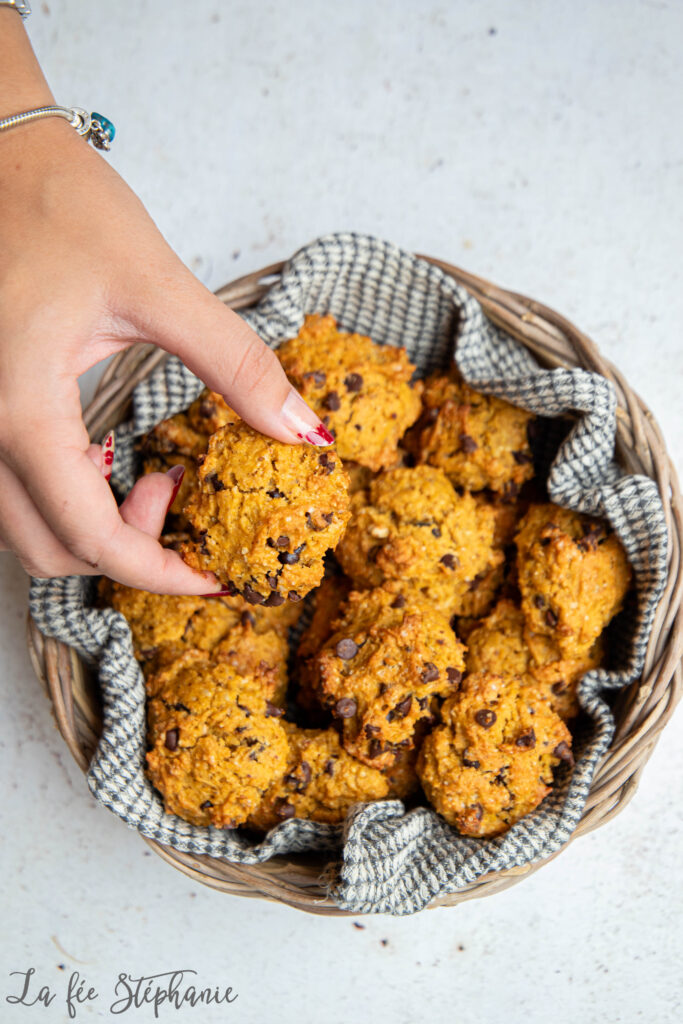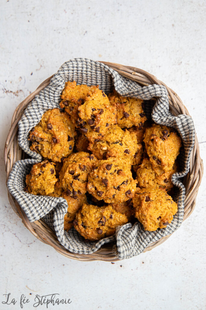 Je vous avais promis plusieurs recettes à réaliser avec de la purée de courge, voici la deuxième recette de la semaine. Des petits rochers bien gourmands avec des ingrédients qu’on aime tant: de la purée de courge bien sûr, des noisettes toastées et du beurre d’arachide… sans oublier des pépites de chocolat parce que tout est meilleur au chocolat ! Ils se conservent plusieurs jours dans une boite à gâteaux. Je les aime particulièrement pour accompagner une tisane ou mon café après le déjeuner. Je ne suis pas très dessert, mais j’ai vraiment un faible pour les gâteaux secs. Vous vous laisserez bien tenter ?