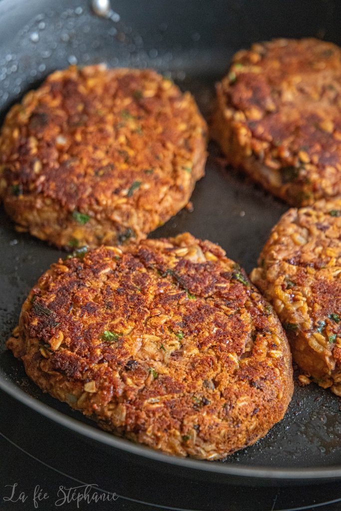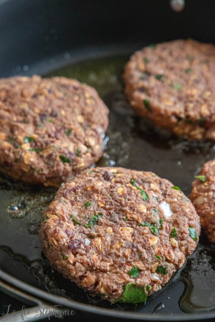 5.Chauffer et huiler une poêle. Dorer les burgers quelques minutes de chaque coté.