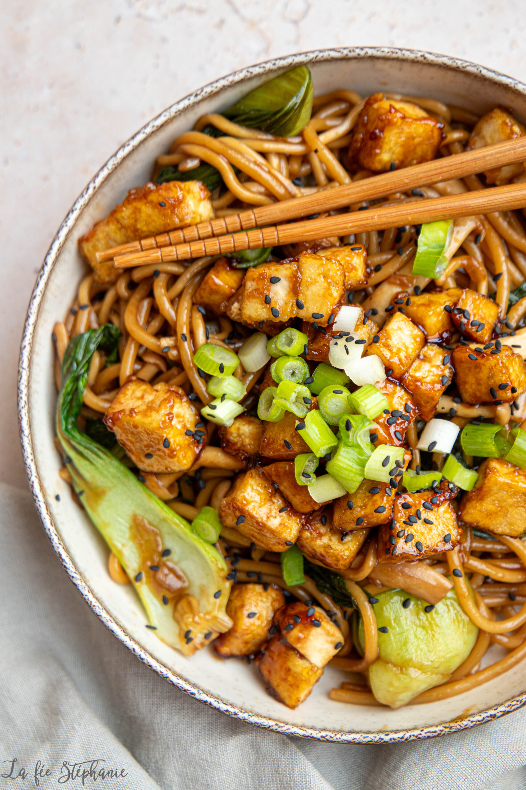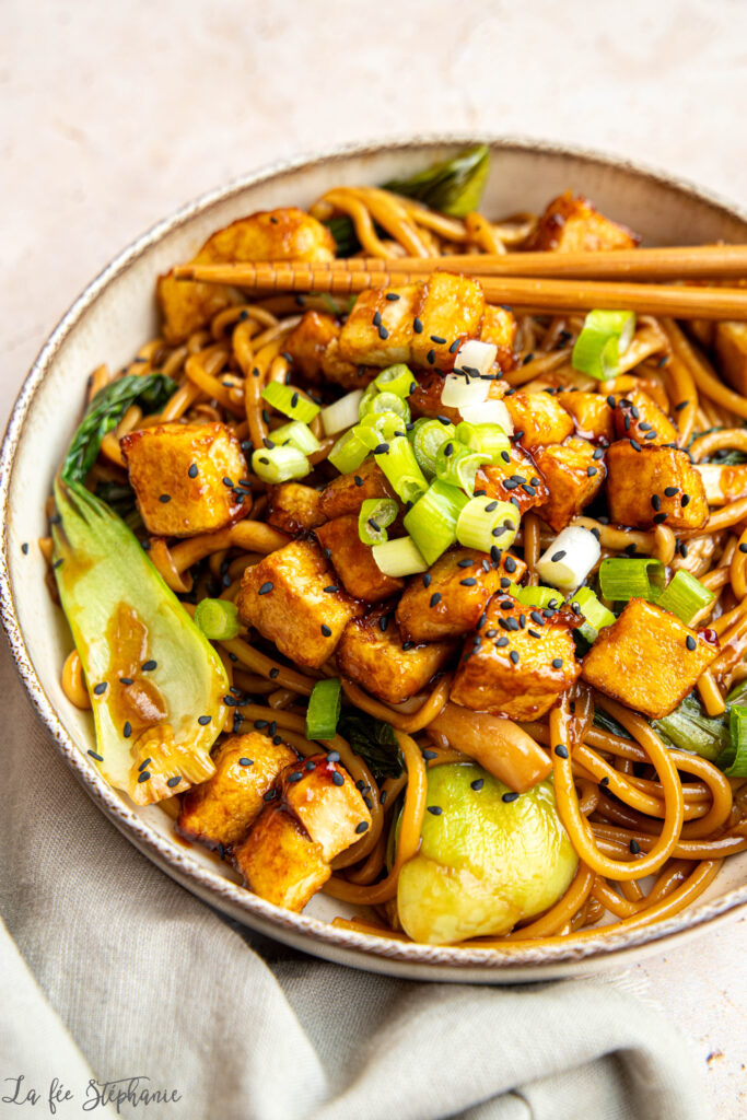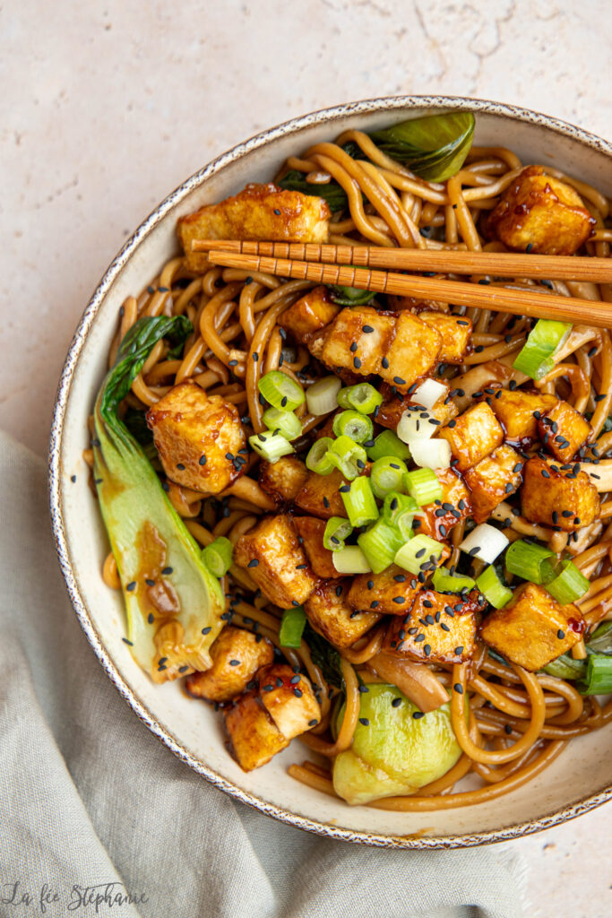Nouilles sautées au chou pak choï, tofu gourmand