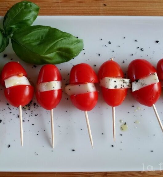 Et si aujourd’hui c’étaient les enfants qui cuisinaient? Brochettes de datterini (petites tomates) à la caprese