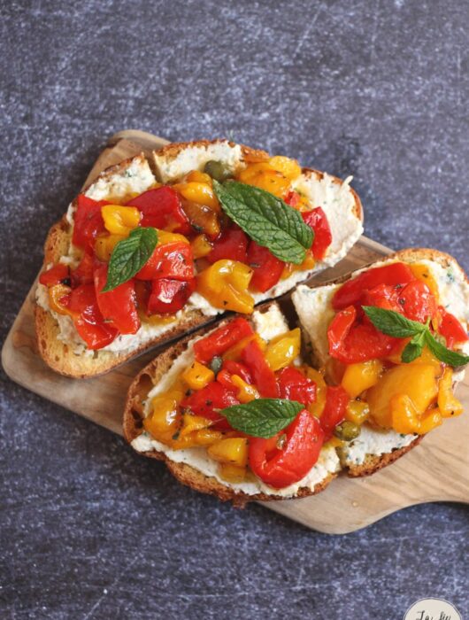 “Bruschette” aux poivrons rôtis et au fromage de cajou, une recette aux couleurs de l’été