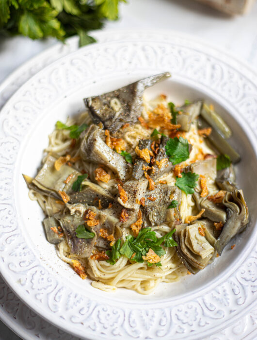 Tagliolini faits maison aux coeurs d’artichauts poêlés pour une douce Saint Valentin