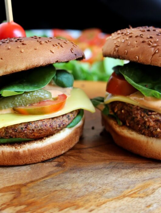 Burgers mexicains quinoa, maïs et haricots rouges et sauce rose