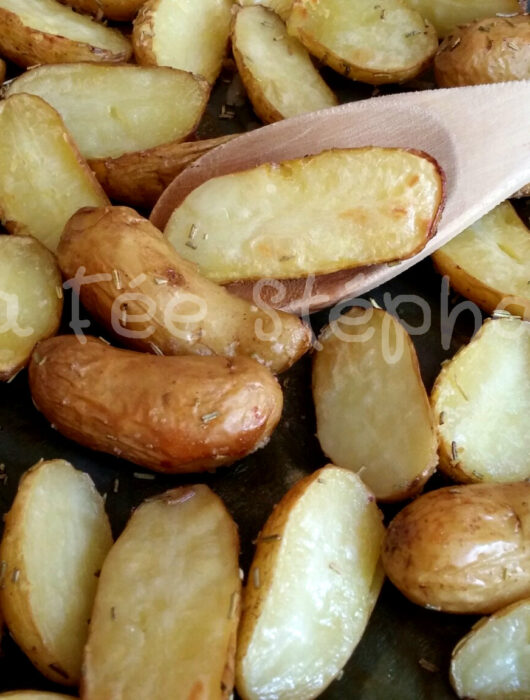 Pommes de terre nouvelles et sauce au yaourt aromatisée aux oignons et à l’ail grillés