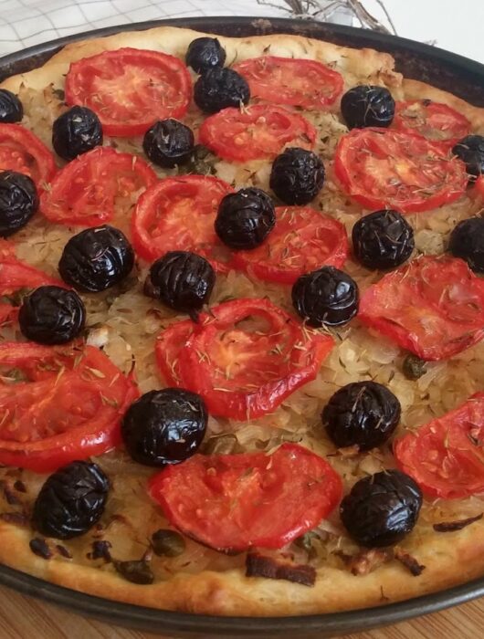 Pissaladière revisitée vegan (sans anchois) avec une pincée d’Italie